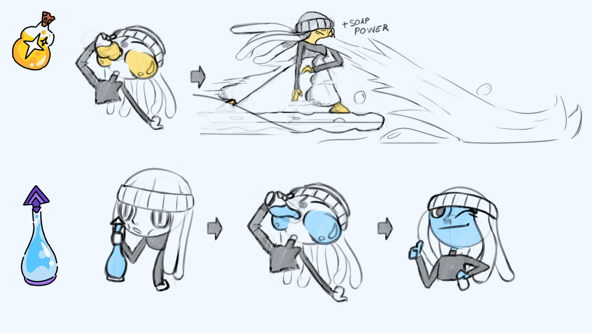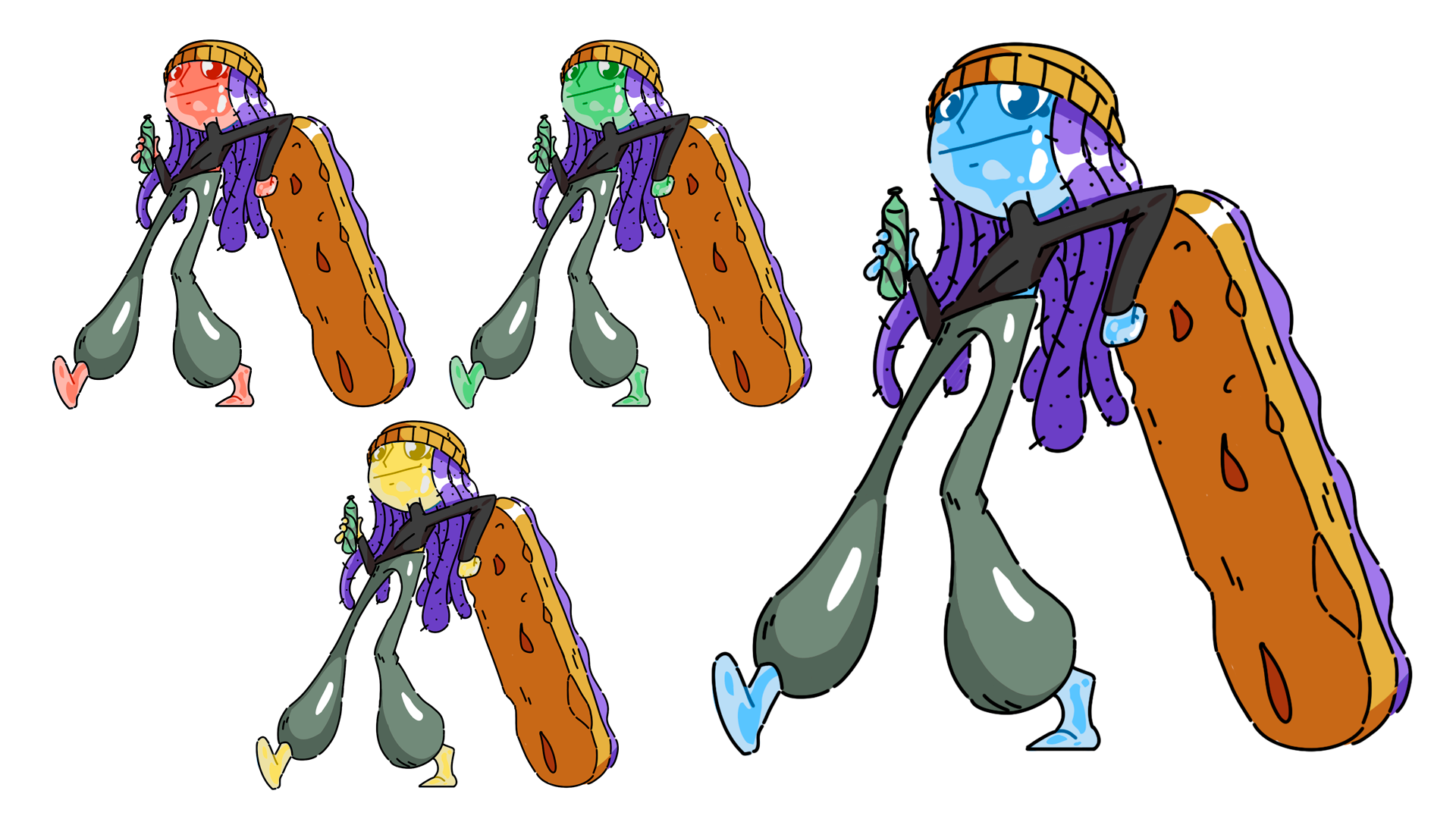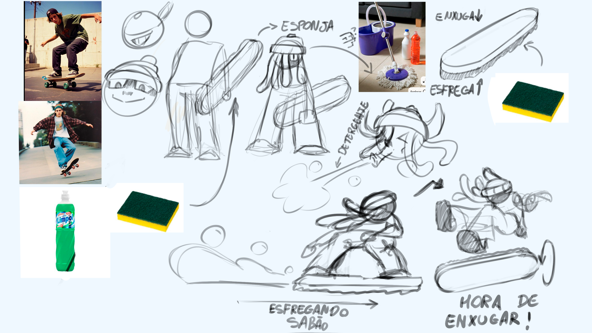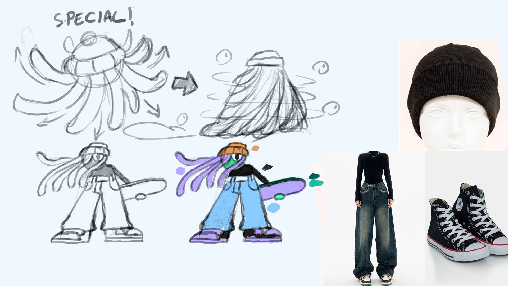 The brief given to the students was to create a water elemental character who uses their cleaning abilities to wash an arena. We also had to use an archetype to define who the character is, and mine is a skateboarder.